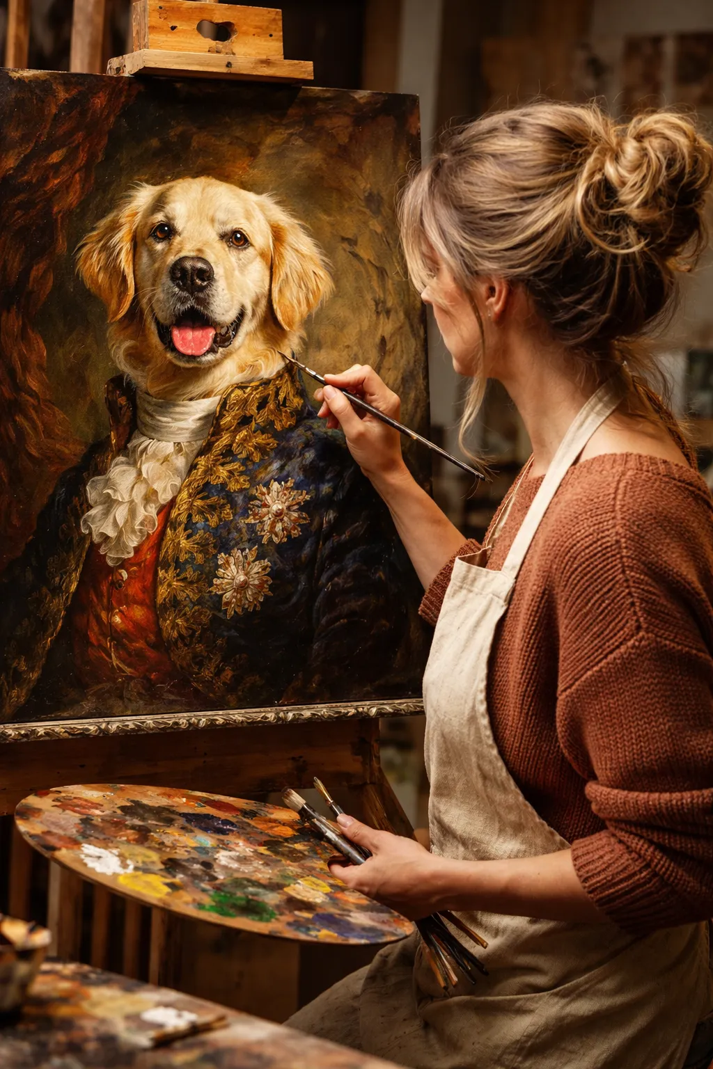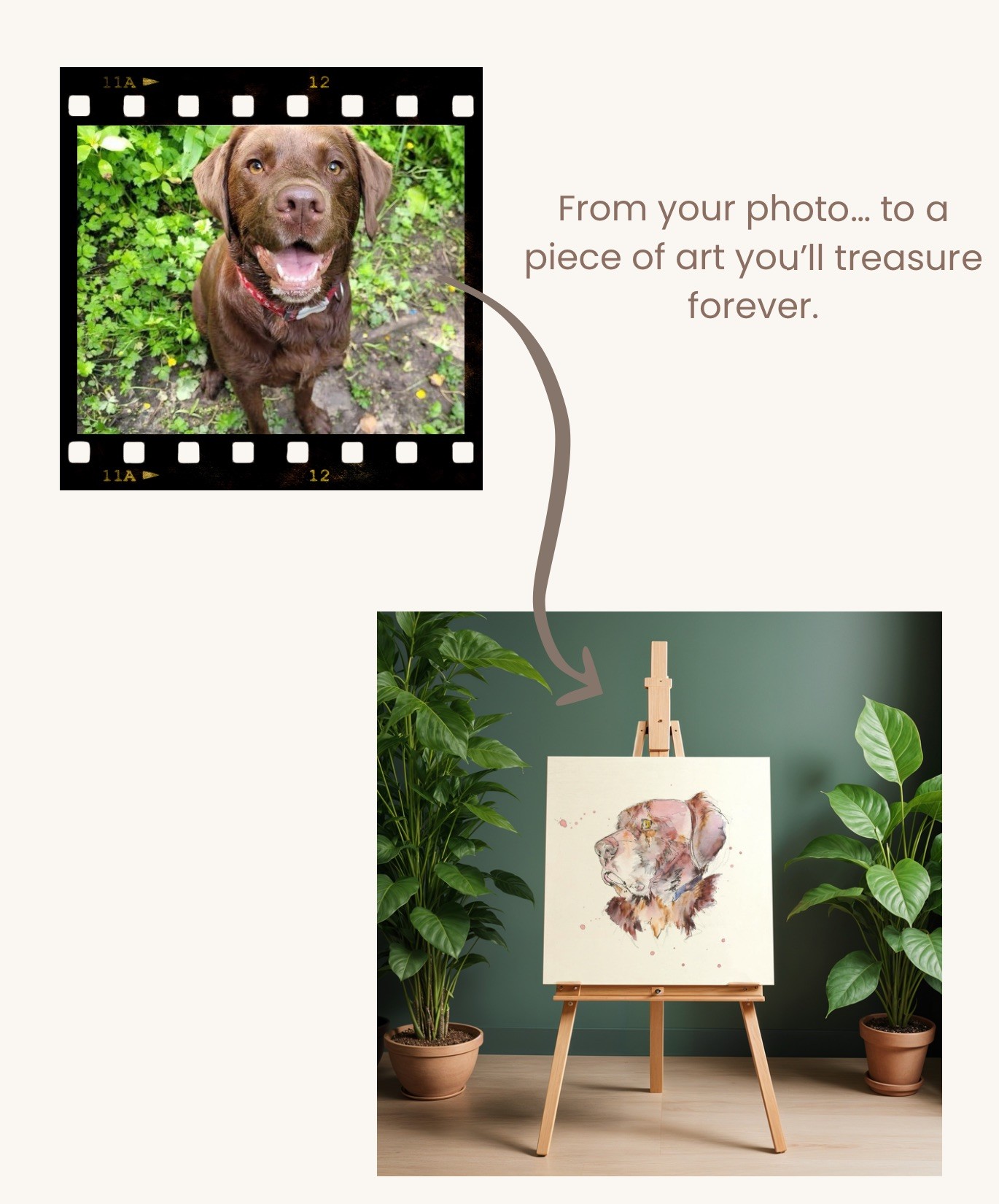 Every Pawtrait is hand-painted by a real artist, not generated by AI or filters. This means each piece is one of a kind and created with care and attention to detail.