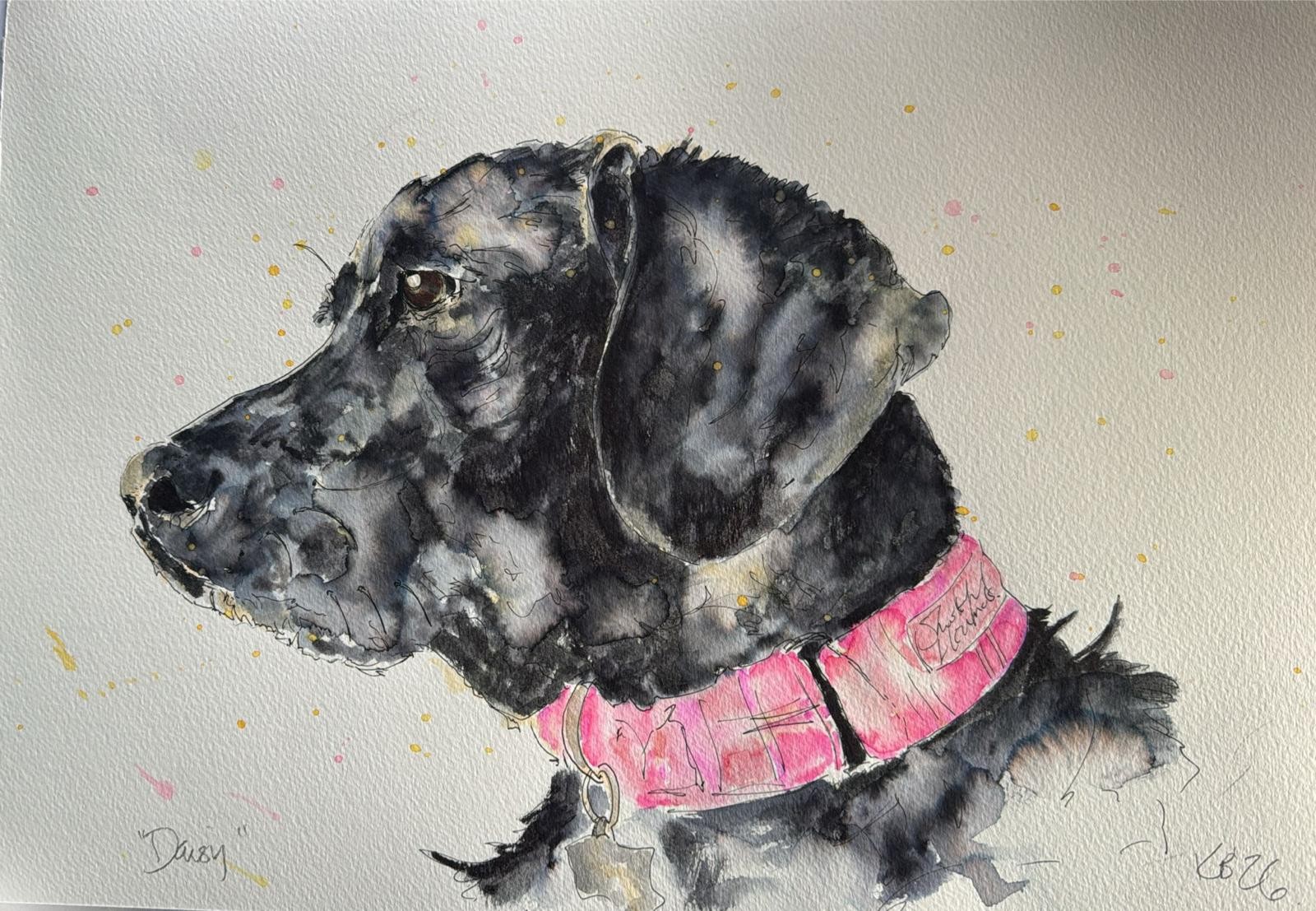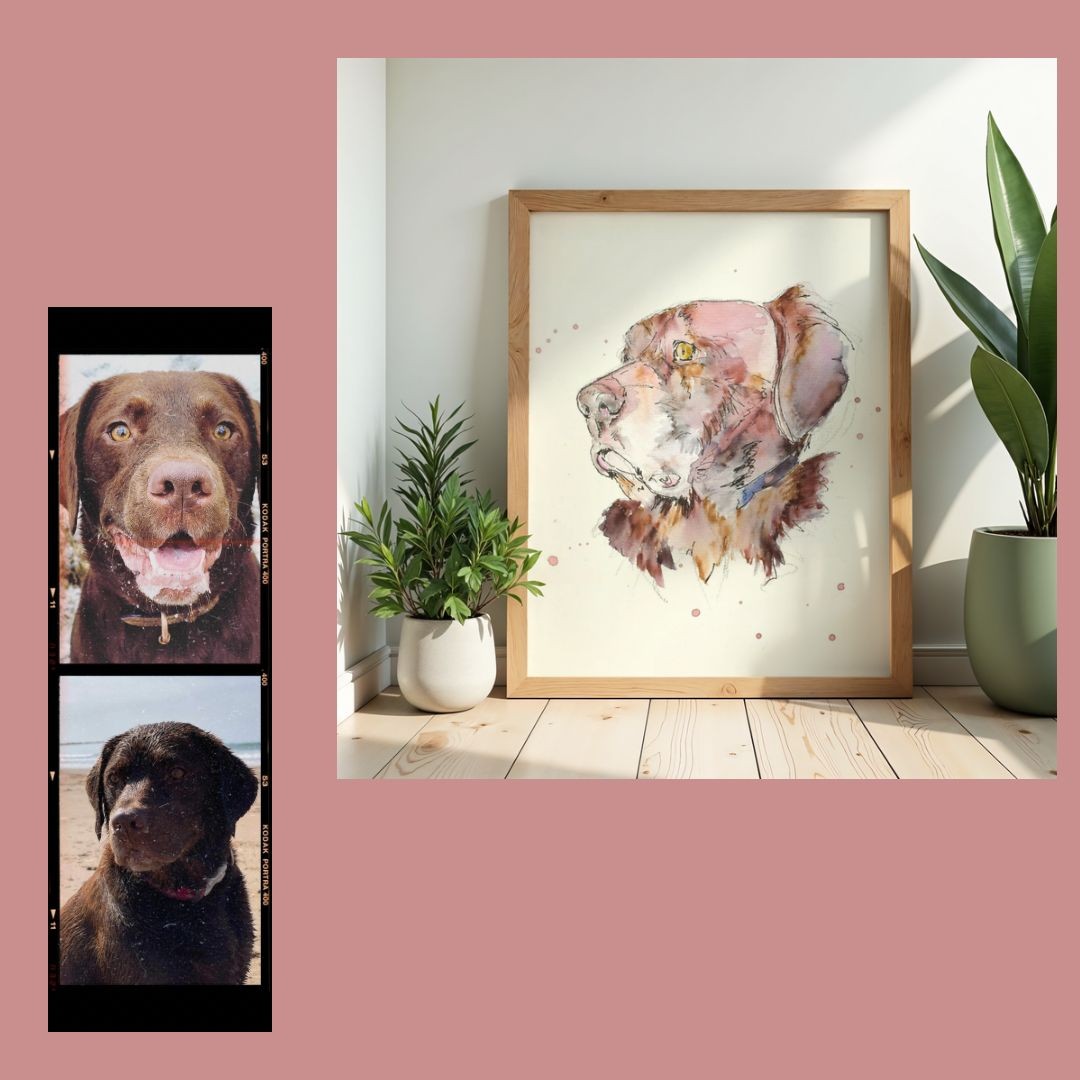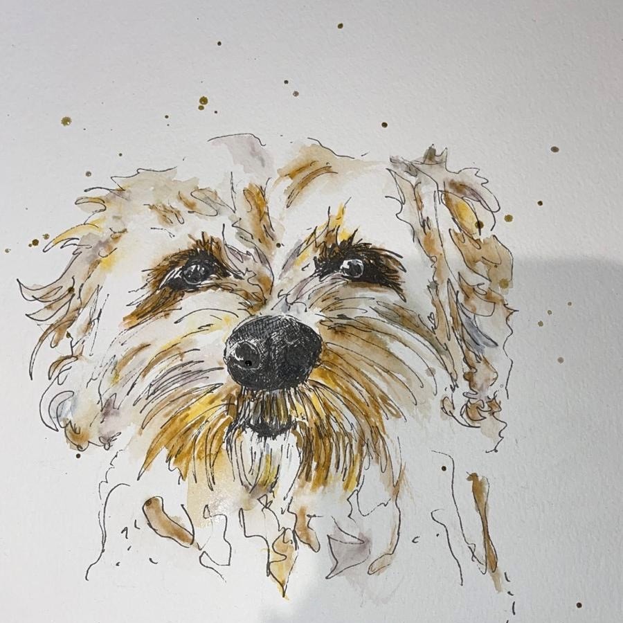Today, Kirsty creates detailed, expressive artwork using ink and watercolour, focusing on what matters most, capturing personality, emotion and connection.